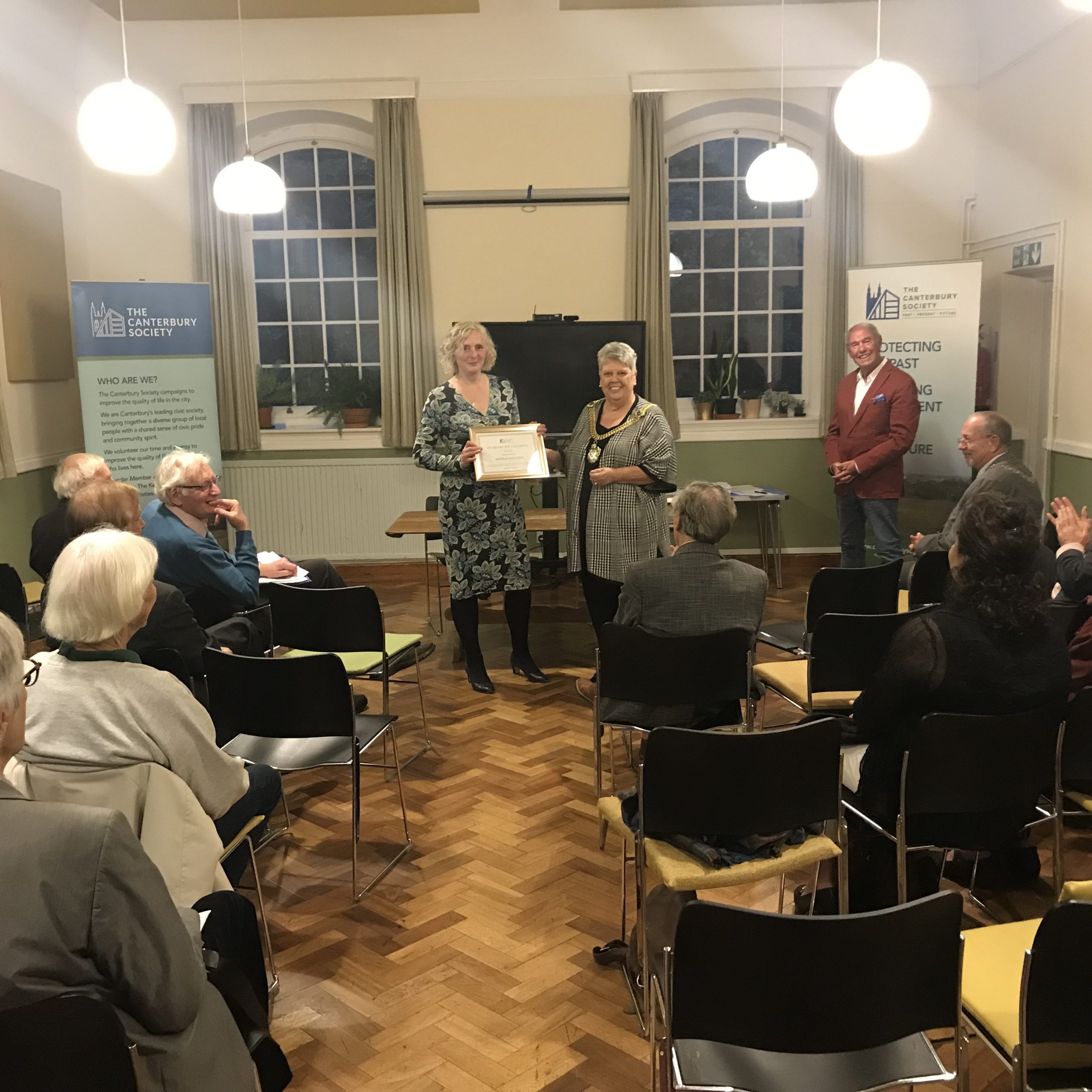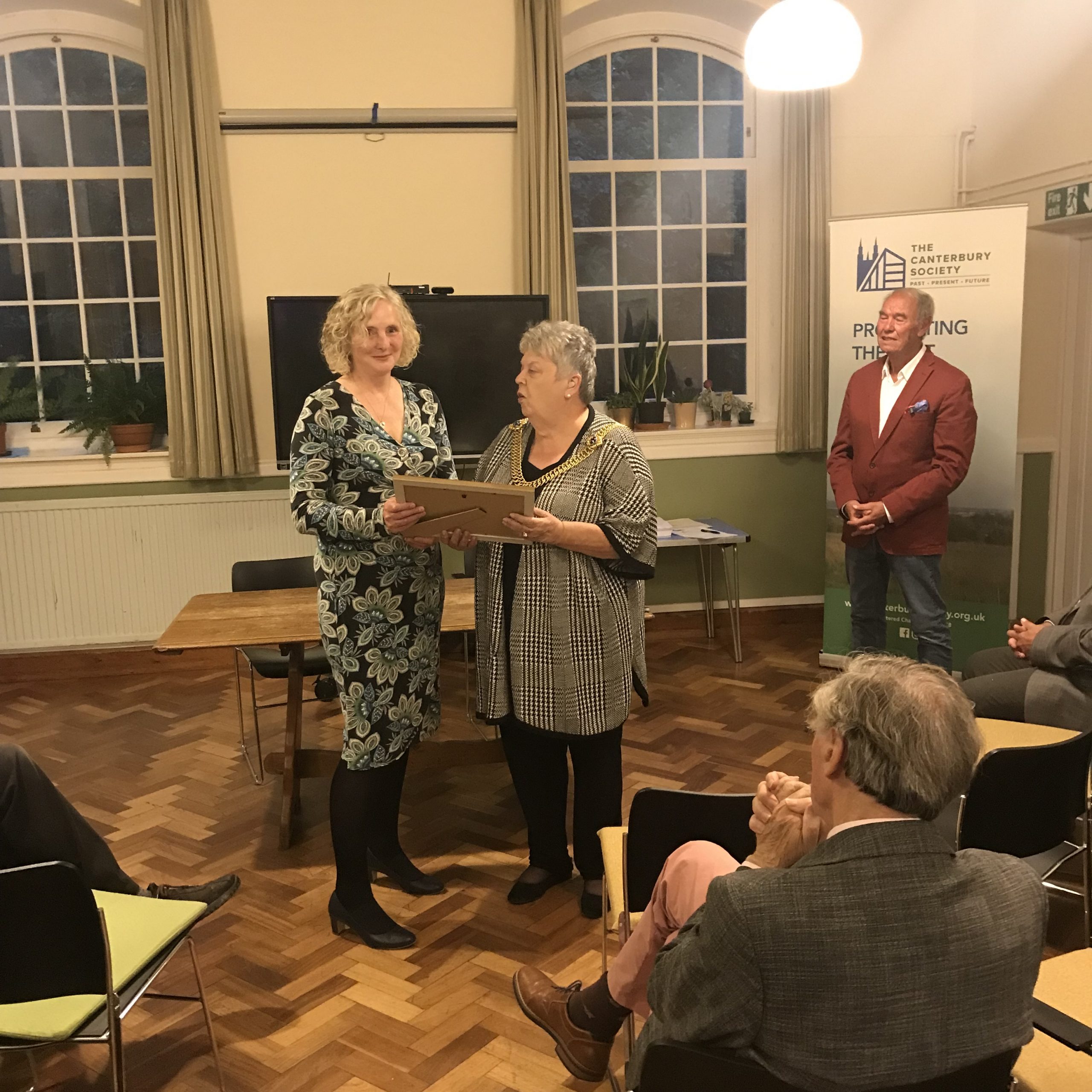 Civic Champion Award presented to Angela Gardiner of the Canterbury Foodbank by the Worshipful Lord Mayor at the AGM of the Canterbury Society 21stSeptember